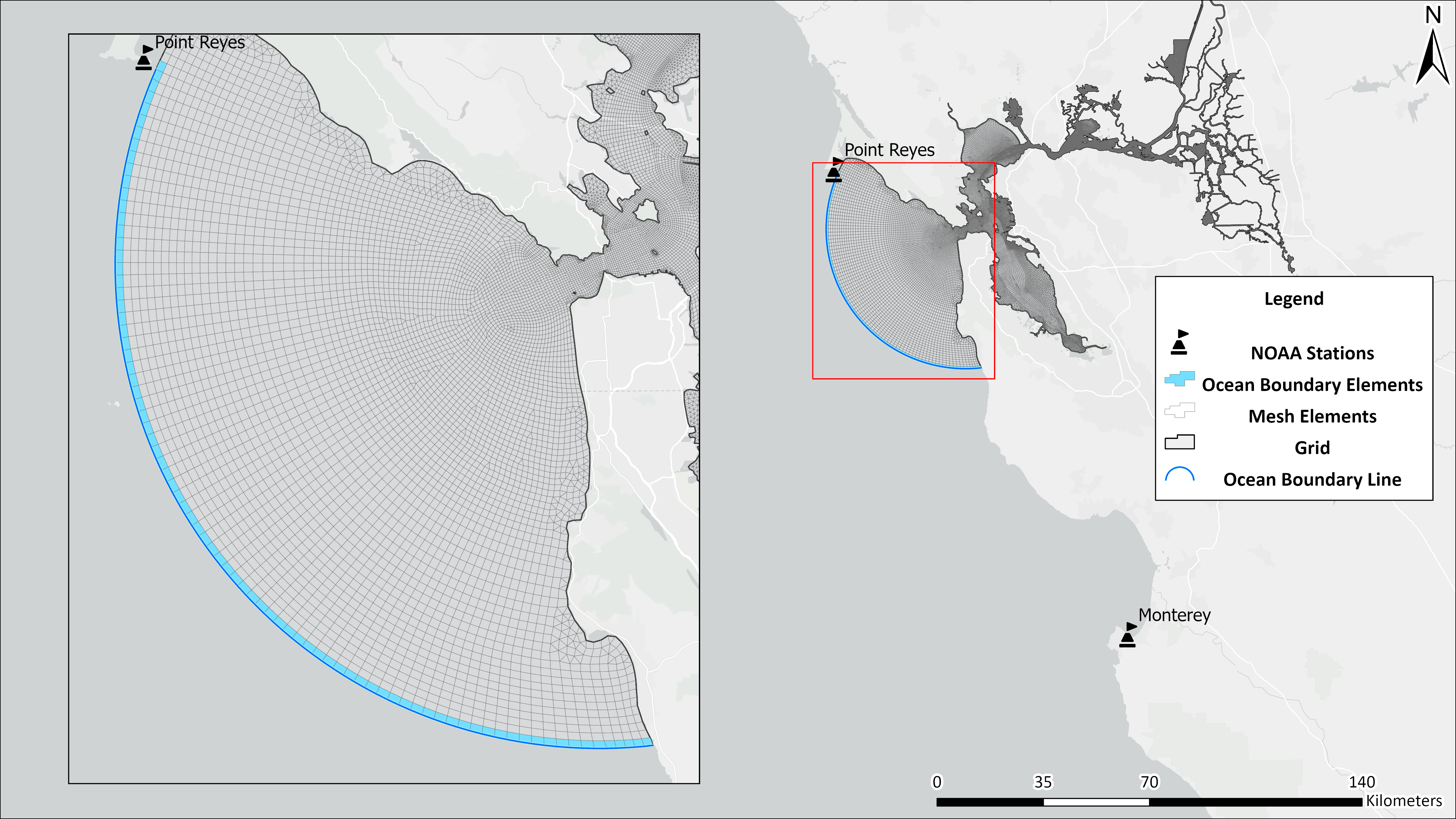 The ocean boundary relies on elev2D.th.nc for both barotropic and baroclinic runs for historical cases. In the baroclinic case we also specify the u- and v-velocity boundary condition in the uv3D.th.nc file which is generated from the barotropic run (See Generate uv3D.th.nc for more info on the uv3D.th.nc file generation).